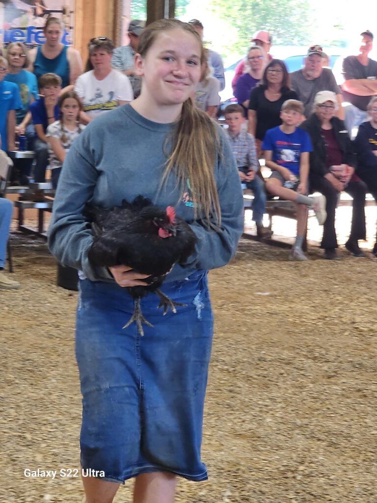 Macy Locklear won the Supreme Poultry this year with her Black Star hens. She did a great job taking care of them and her winnings included a check from the Henderson County Fair and the Supreme belt buckle!